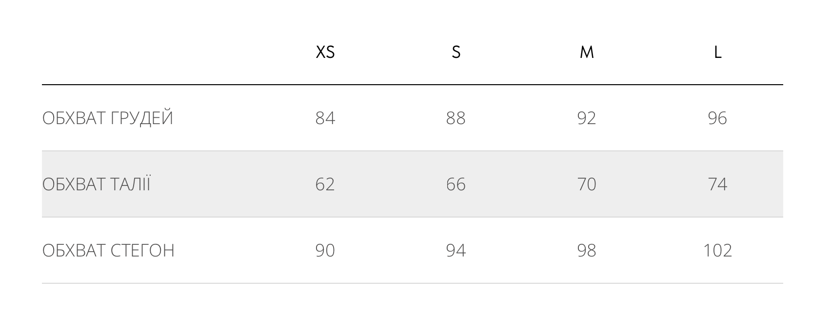 Приклад розрахунку. Якщо обхват під грудьми дорівнює 70 см, а грудей - 85 см, то розмір розраховується так: 85-70 = 15 см, що відповідає розміру - В.